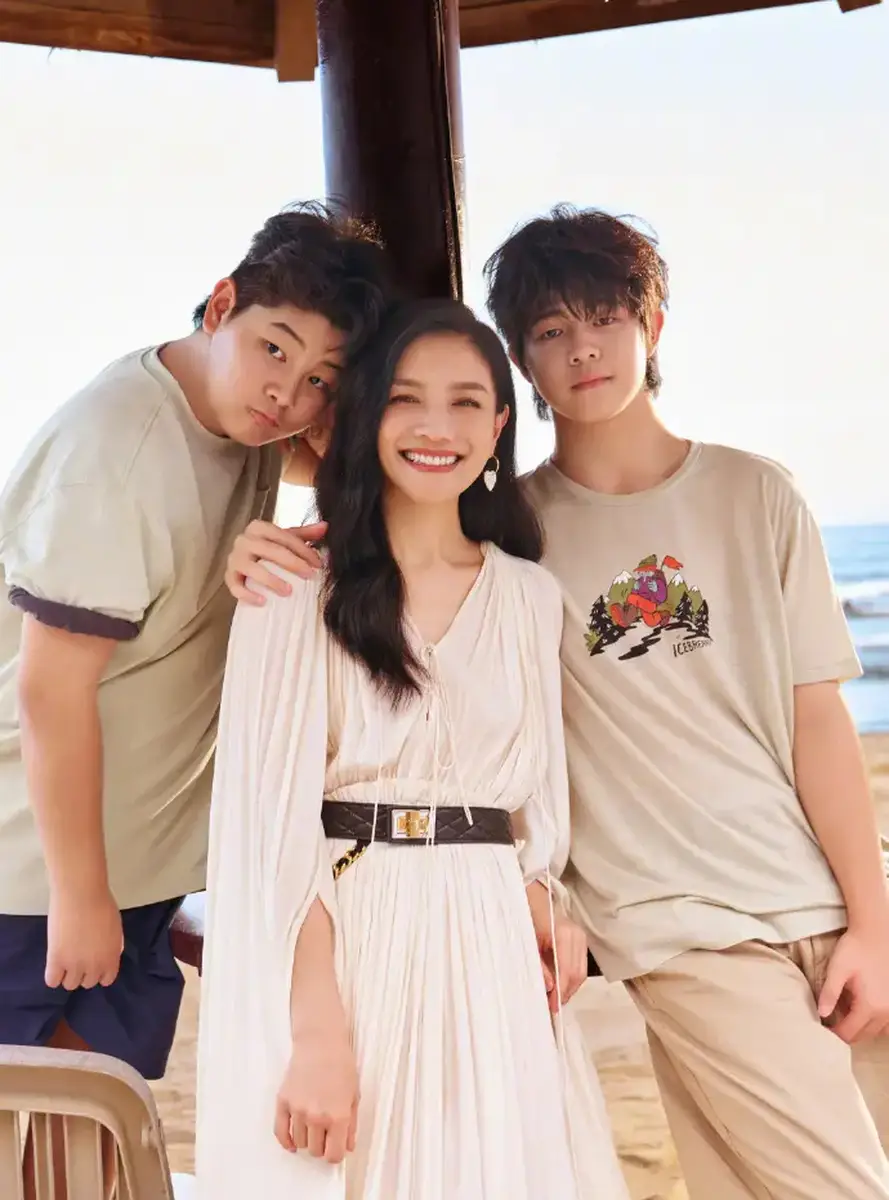胡可與兩個兒子貼貼合影,畫面溫馨又治愈。