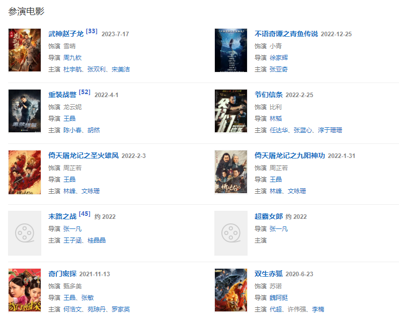 2021年,《不語奇譚之青魚傳說》在橫店正式開機 ;11月,主演的古裝喜劇電影《奇門密探》在愛奇藝視頻播出。