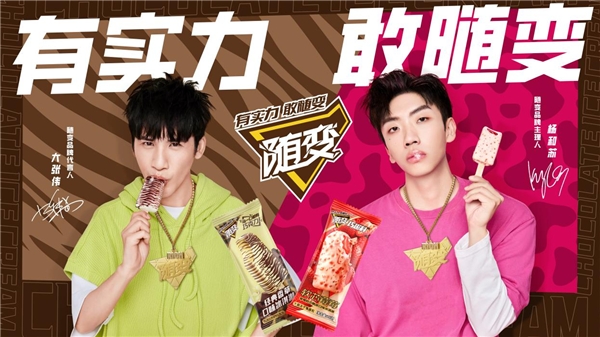 品牌代言人大張偉,助力隨變從節(jié)目破圈,引發(fā)大眾關(guān)注。“人間精品”的他吸粉無(wú)數(shù),幽默大膽的發(fā)言不乏清醒。大張偉以無(wú)可替代的個(gè)人風(fēng)格,受到眾多粉絲喜愛(ài)。就像隨變經(jīng)典香草口味冰淇淋,承載品牌基因,成就行業(yè)中獨(dú)一無(wú)二的識(shí)別度,實(shí)力詮釋巧冰品類20年的經(jīng)典魅力。品牌主理人楊和蘇,在節(jié)目中威武全開(kāi),將流量轉(zhuǎn)化為品牌熱度。他敢直說(shuō)、敢挑戰(zhàn)、敢不同,憑借實(shí)力登上多個(gè)嘻哈王座,隨時(shí)隨地吸引全場(chǎng)目光。恰如隨變軟芯莓莓口味冰淇淋,巧克力與大顆凍干草莓的完美邂逅,可顏可甜,層次豐富脆感十足;內(nèi)含清甜的草莓流芯果醬,層次豐富脆感十足,一經(jīng)問(wèn)世,便贏得無(wú)數(shù)關(guān)注。偶像集結(jié),聯(lián)盟出擊,隨變攜手大張偉楊和蘇演繹國(guó)民冰淇淋,“敢”當(dāng)先鋒實(shí)力派。