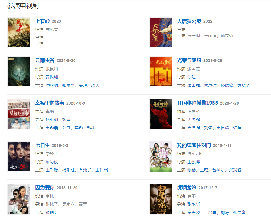 2009年,主演災難電影《唐山大地震》 ;同年主演抗戰(zhàn)劇《我的團長我的團》。