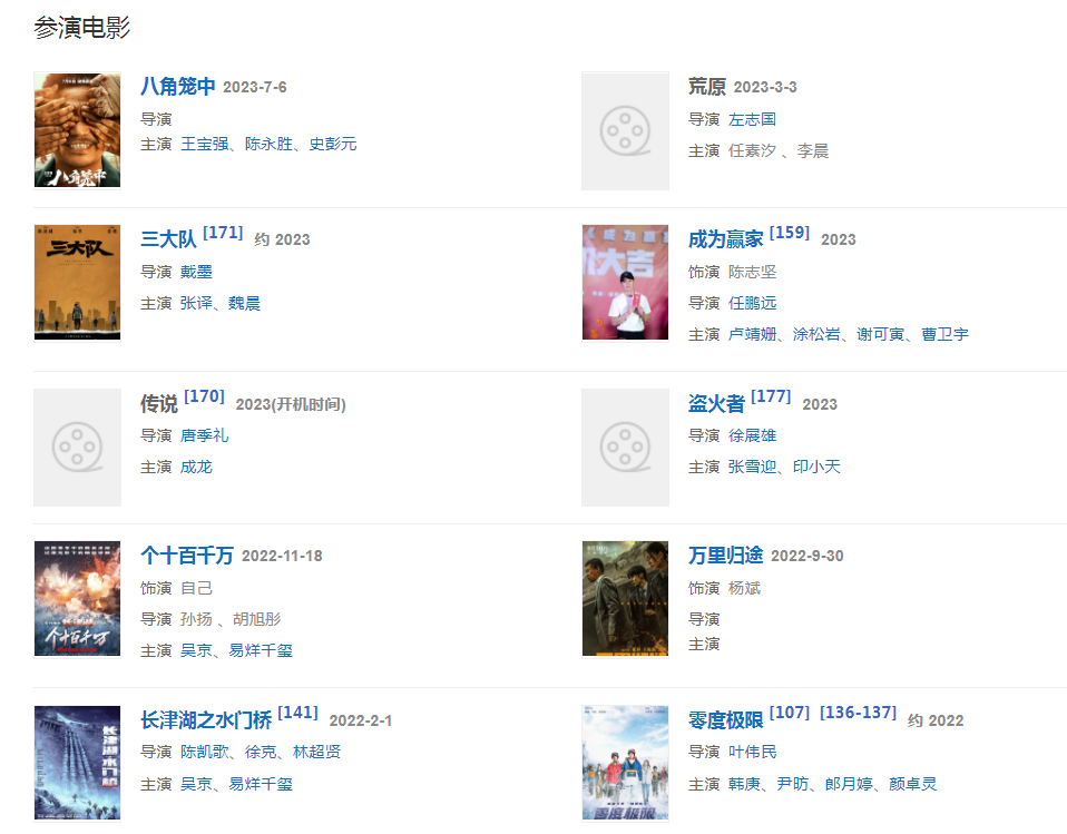 代表作品:士兵突擊、生死線、北京青年、北京愛情故事、好家伙、草帽警察、秀才遇到兵、唐山大地震、空天獵、十七歲不哭、1921、建黨偉業(yè)