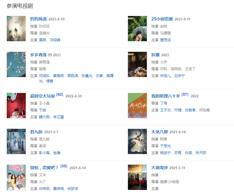 代表作品:匆匆那年、如懿傳、鳳弈、第三種愛(ài)情、云巔之上、如夢(mèng)令